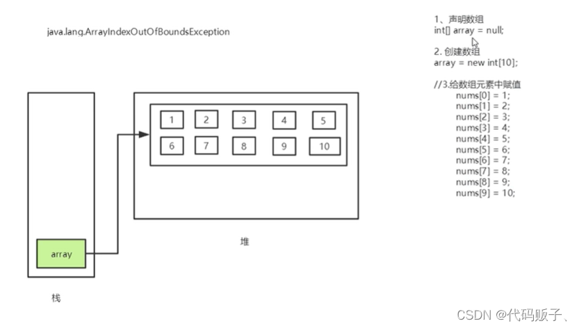 - 实例变量:写在方法的外面,类的里面(从属于对象,或者理解为从属于这个类,要通过这个类来使用它,如果不规定初始值则利用的是初始值)并且不需要进行初始化。