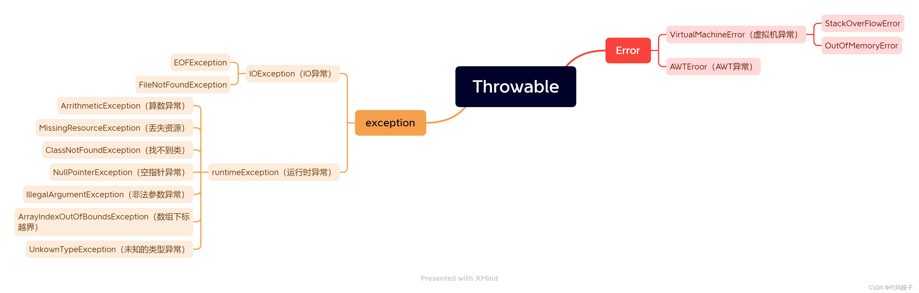 - throw:当程序发生异常而无法处理的时候,会抛出对应的异常对象。